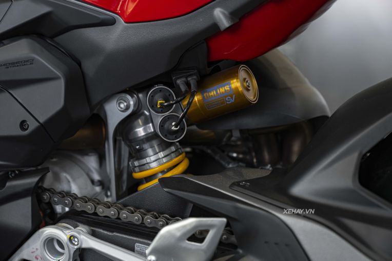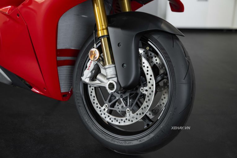 Phiên bản S cao cấp được trang bị hệ thống treo điện tử Öhlins SmartEC 3.0 với phuộc trước NPX30 và phuộc sau TTX36, có khả năng tự động điều chỉnh độ đàn hồi theo thời gian thực dựa trên điều kiện vận hành. Ở hệ thống hãm tốc, Ducati sử dụng kẹp phanh Brembo Hypure thế hệ mới với trọng lượng nhẹ hơn, tối ưu khả năng tản nhiệt và giảm ma sát dư thừa. Đáng chú ý nhất là sự xuất hiện của công nghệ Race eCBS. Đây là hệ thống phanh kết hợp thông minh có khả năng tự động phân bổ lực phanh xuống bánh sau nhằm mô phỏng lại kỹ thuật phanh của các tay đua chuyên nghiệp.