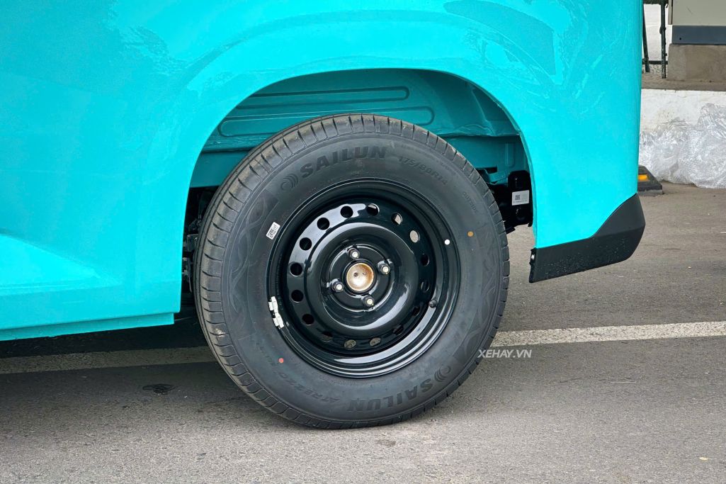 Ở phía sau, cụm đèn hậu có thay đổi nhẹ so với thiết kế 3D ban đầu. Xe được trang bị bộ mâm sắt 14 inch sơn đen, không có ốp trang trí.