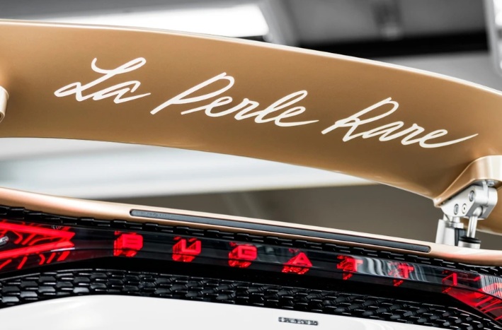 Bước vào khoang lái của Bugatti W16 Mistral La Perle Rare sự sang trọng được đẩy lên cao trào với tông màu trắng và vàng kem đồng nhất với ngoại thất, điểm xuyết bởi các chi tiết mạ chrome bóng bẩy. Tên gọi “La Perle Rare” xuất hiện đầy nghệ thuật trên tựa tay trung tâm, trong khi biểu tượng chú voi nhảy múa được thêu tỉ mỉ trên tựa đầu và đúc nổi trên cần số.