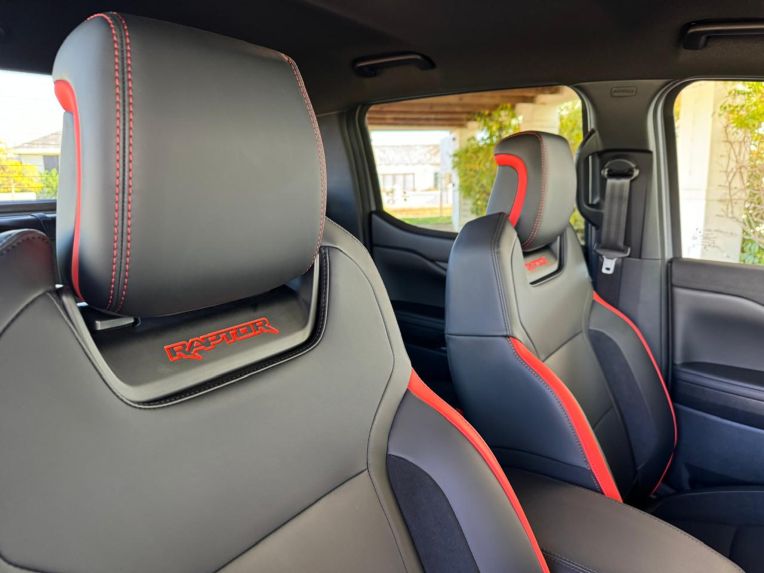 Điểm đáng giá nhất trên Ford Ranger Raptor V6 3.0L nằm ngay ở khối động cơ xăng EcoBoost V6 3.0L tăng áp kép. Cỗ máy này sản sinh công suất tối đa lên tới 392 mã lực và mô-men xoắn cực đại 583 Nm, kết hợp cùng hộp số tự động 10 cấp danh tiếng của Ford. Nếu đặt lên bàn cân so với phiên bản Raptor máy dầu hiện hành, động cơ xăng V6 mới mạnh hơn đáng kể, cụ thể là tăng thêm 182 mã lực về công suất và 83 Nm về sức kéo. Hệ dẫn động bốn bánh trên xe được bổ sung chế độ 4A (4 bánh toàn thời gian), mang lại khả năng phân bổ lực kéo linh hoạt và tối ưu hơn trên mọi điều kiện địa hình phức tạp.