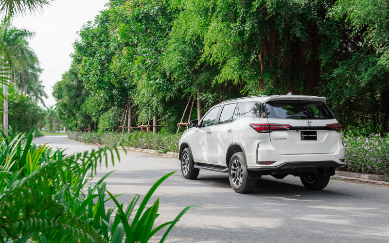 Toyota Fortuner 2024 có trục cơ cơ sở dài 2.745 mm kém hơn so với các đối thủ Hyundai SantaFe 2024 (2.765 mm), Ford Everest 2024 (2.900 mm), Kia Sorento 2024 (2.815 mm), Mazda CX-8 (2.930 mm). Dù vậy, hành khách phía sau vẫn có chỗ để chân khá ổn, không quá chật.