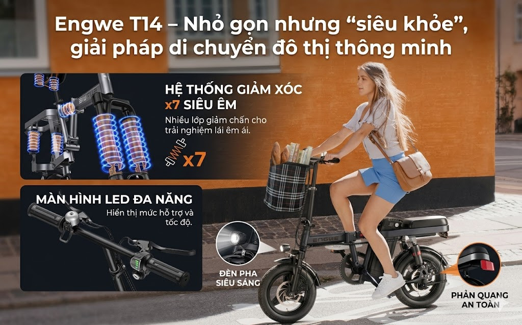 Với những ưu điểm nổi bật về thiết kế, hiệu năng và tính tiện lợi, Engwe P26 đang dần trở thành lựa chọn đáng cân nhắc cho nhiều người dùng, đặc biệt là các bậc phụ huynh đang tìm kiếm phương tiện di chuyển an toàn, tiết kiệm và phù hợp cho con em đi học.