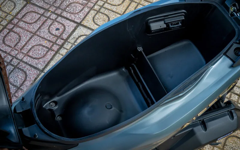 Bên cạnh các tính năng an toàn và chiếu sáng, Honda AirBlade 2025 còn được trang bị cốp đựng đồ có dung tích khá lớn, lên đến 22,7 lít. Không gian chứa đồ rộng rãi này mang lại sự tiện lợi cho người sử dụng trong việc mang theo các vật dụng cá nhân hàng ngày như mũ bảo hiểm, áo mưa hoặc túi xách nhỏ.