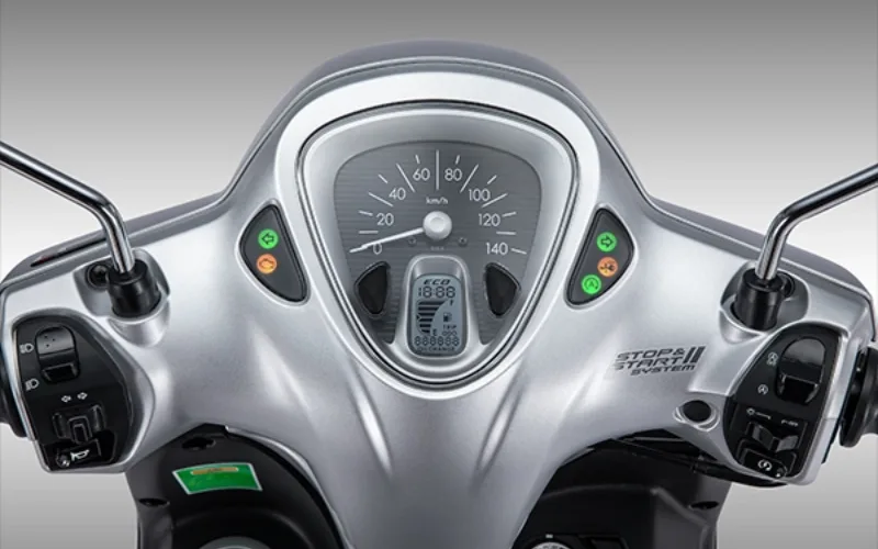 Về trang bị, Yamaha Latte 2025 mẫu xe tay ga đến từ Nhật Bản này sở hữu cụm đồng hồ hiển thị được chia thành hai phần độc đáo. Phía trên là một đồng hồ analog cổ điển, hiển thị tốc độ di chuyển của xe. Phía dưới là một màn hình điện tử LCD FSTN đơn sắc, được bố trí một cách tinh giản, hiển thị các thông số kỹ thuật quan trọng của xe như quãng đường đã đi (ODO), quãng đường đi trong một hành trình (TRIP), mức nhiên liệu hiện tại, số lần thay dầu nhớt và cả đồng hồ báo giờ…