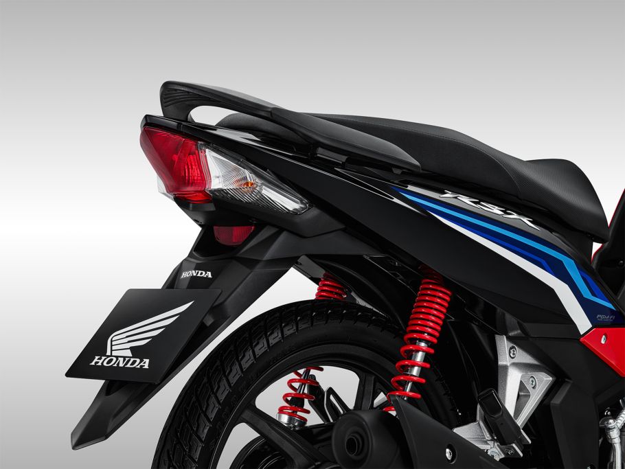 Đặc biệt ở phiên bản thể thao Đỏ Đen, tem xe được thiết kế lấy cảm hứng từ những mẫu xe đua chuyên nghiệp. Ba màu Đỏ – Xanh – Trắng phối hợp tinh tế trên mặt nạ và thân xe, tạo nên diện mạo mạnh mẽ, đậm chất tốc độ và cá tính.