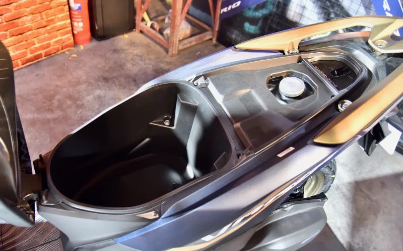 Bình xăng có dung tích 5,5 lít được đặt dưới yên xe, trong khi hộc chứa đồ dưới yên có kích thước nhỏ, khoảng 18 lít, đủ để chứa một mũ bảo hiểm nửa đầu cùng một số vật dụng cá nhân khác.