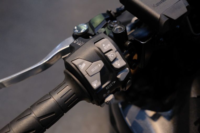 Ngoài ra, Z1100 SE còn sở hữu hệ thống sang số nhanh hai chiều KQS, hỗ trợ chuyển số mượt mà không cần can thiệp tay côn. Một bổ sung đáng giá khác là tính năng kiểm soát hành trình (Cruise Control), lần đầu tiên xuất hiện trên dòng naked-bike 1.000cc của Kawasaki, hỗ trợ giảm mệt mỏi cho người lái trên những hành trình dài. Người dùng có thể linh hoạt chuyển đổi giữa 4 chế độ lái: Sport, Road, Rain và chế độ Rider tùy chỉnh để phù hợp với kỹ năng và điều kiện thời tiết.