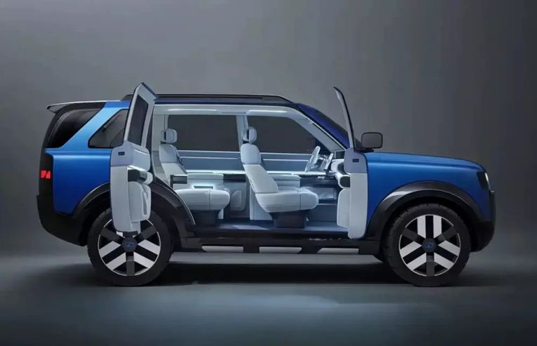 Hãng xe giới thiệu hai biến thể màu sắc bao gồm xanh Glacier Blue và xanh Thousand Mountain Green. Điểm nhấn ngoại thất nằm ở các chi tiết ốp nhựa đen phối hợp cùng vật liệu nhôm tại các vị trí như nắp ca-pô, lưới tản nhiệt và tấm chắn gầm. Những chi tiết mang tính biểu diễn như cửa mở ngược hay bộ mâm lốp hầm hố dự kiến sẽ được tinh chỉnh lại khi xe bước vào giai đoạn sản xuất thương mại để đảm bảo tính thực dụng.