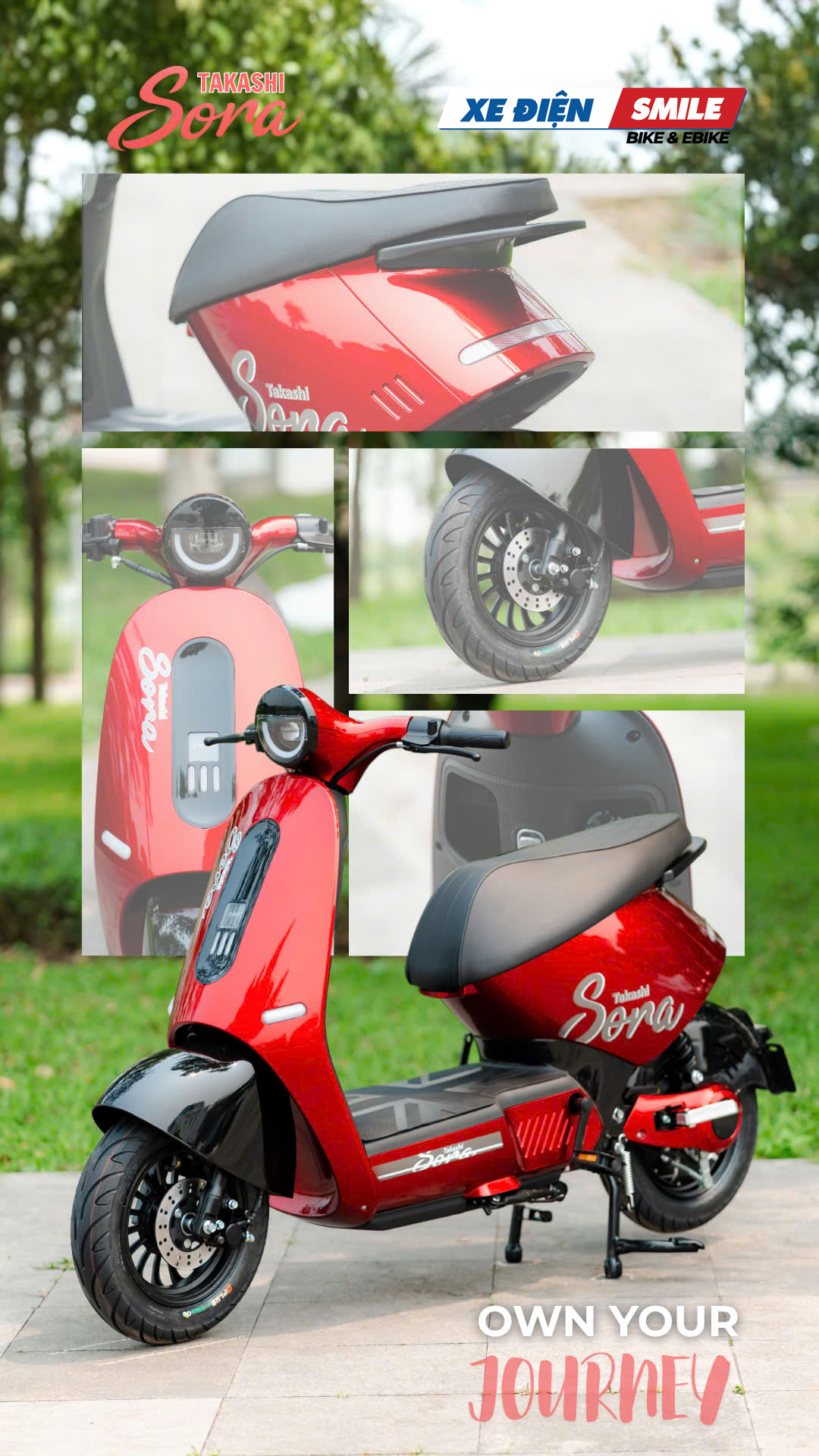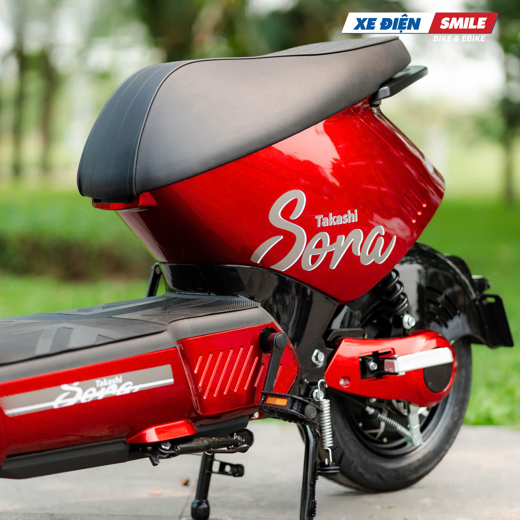 Đường nét tinh giản, thanh lịch: Form xe nhỏ gọn, các đường vuốt cong mềm mại ôm dọc thân xe với tem chữ “Takashi Sora” cách điệu mang đến sự trẻ trung, tôn dáng người ngồi, đặc biệt là phái đẹp.