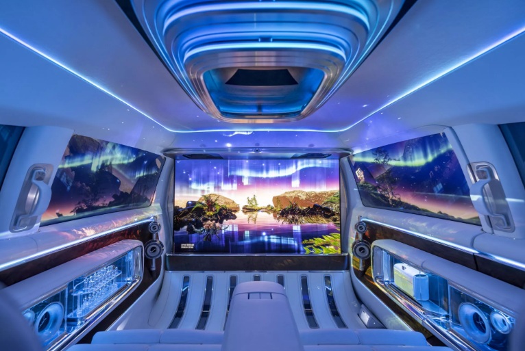 Ở phiên bản VLS cao cấp nhất, xe được định vị như một “phòng lounge di động”, với khoang sau được trang bị ghế ngồi độc lập và màn hình giải trí 4K kích thước lớn, hướng tới nhóm khách hàng thượng lưu hoặc các dịch vụ đưa đón VIP.