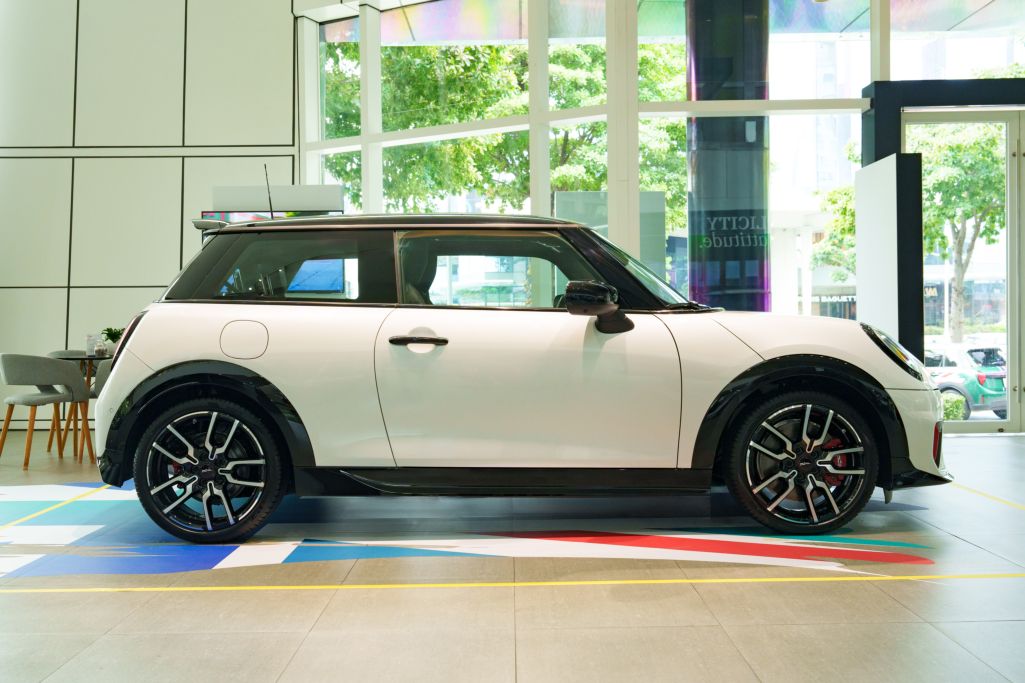 Phiên bản JCW còn được trang bị gói khí động học riêng, với hốc gió trước giúp làm mát động cơ và phanh, cùng các khe định hướng luồng gió ở phía sau. Xe sở hữu hệ thống treo thể thao thích ứng đi kèm bộ mâm 18 inch hai tông màu và kẹp phanh đỏ hiệu suất cao, tạo nên diện mạo mạnh mẽ hơn so với bản thường.