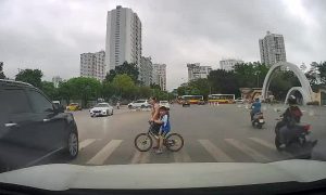Tình huống giao thông: Cô gái đi xe máy từ bên phụ, tạt qua đầu rồi đi lên phía trước