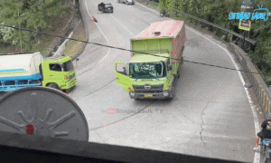 Tình huống giao thông: Trên đoạn đường hẹp thuộc Tỉnh lộ 15 (xã Hóc Môn), chiếc xe tải to lớn