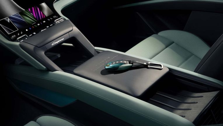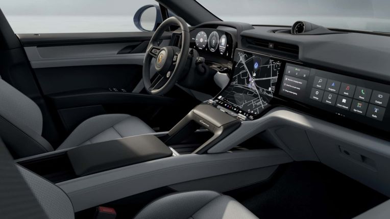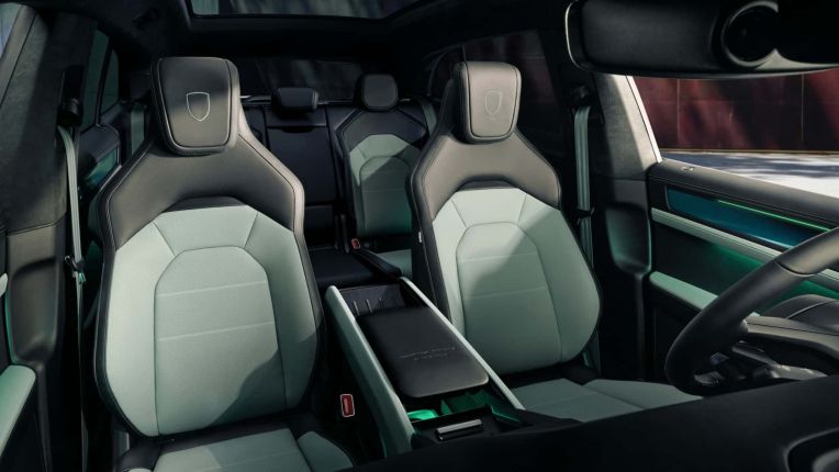 Bên trong khoang lái, hãng xe Đức giới thiệu gói nội thất Style Package mới với tông màu xanh-đen chủ đạo, đồng bộ với màu sơn ngoại thất Mystic Green. Các điểm nhấn màu xanh xuất hiện tinh tế trên bảng táp-lô, vô-lăng và táp-bi cửa, tạo nên không gian cabin hiện đại và khác biệt. Xe vẫn duy trì cấu trúc nội thất kỹ thuật số đặc trưng của dòng Cayenne thế hệ mới với sự tập trung tối đa vào người lái.