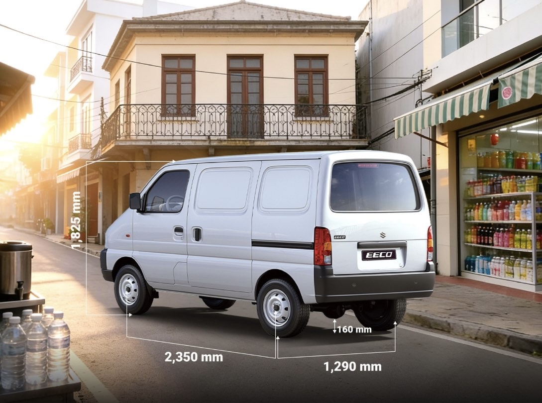 Được thiết kế để tối ưu trong điều kiện đường hẹp và mật độ giao thông cao, Suzuki EECO sở hữu kích thước tổng thể Dài x Rộng x Cao lần lượt là 3.675 x 1.475 x 1.825 (mm), chiều dài cơ sở 2.350mm. Lợi thế về kích thước nhỏ gọn góp phần giảm thiểu mức tiêu thụ nhiên liệu của xe, kết hợp cùng bán kính quay đầu 4,5m nhỏ nhất phân khúc, EECO giúp người lái thêm tự tin về khả năng xoay trở trong những con hẻm nhỏ, quay đầu dễ dàng tại các khu vực đỗ xe đông người. Bên cạnh đó, cảm biến lùi được trang bị nhằm hỗ trợ quan sát khi lùi hoặc đỗ xe trong khu vực giao hàng chật hẹp, đông đúc, qua đó nâng cao sự thuận tiện cho tài xế trong công việc hằng ngày.