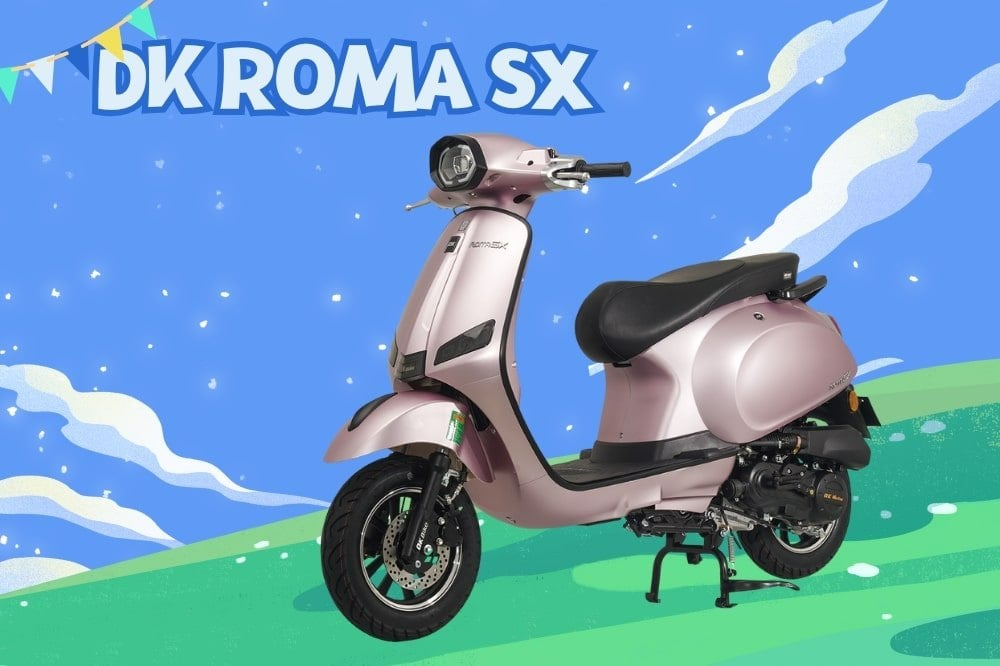Xe tay ga 50cc DK Roma SX nổi bật với thiết kế phong cách Ý hiện đại, sang trọng và cá tính. Kiểu dáng bo tròn mềm mại kết hợp cùng màu sắc nổi bật giúp xe thu hút ngay từ cái nhìn đầu tiên. Cụm đèn trước dạng vuông cách điệu mang lại vẻ độc đáo, trong khi thân xe nhỏ gọn giúp người dùng dễ dàng điều khiển trong đô thị đông đúc.