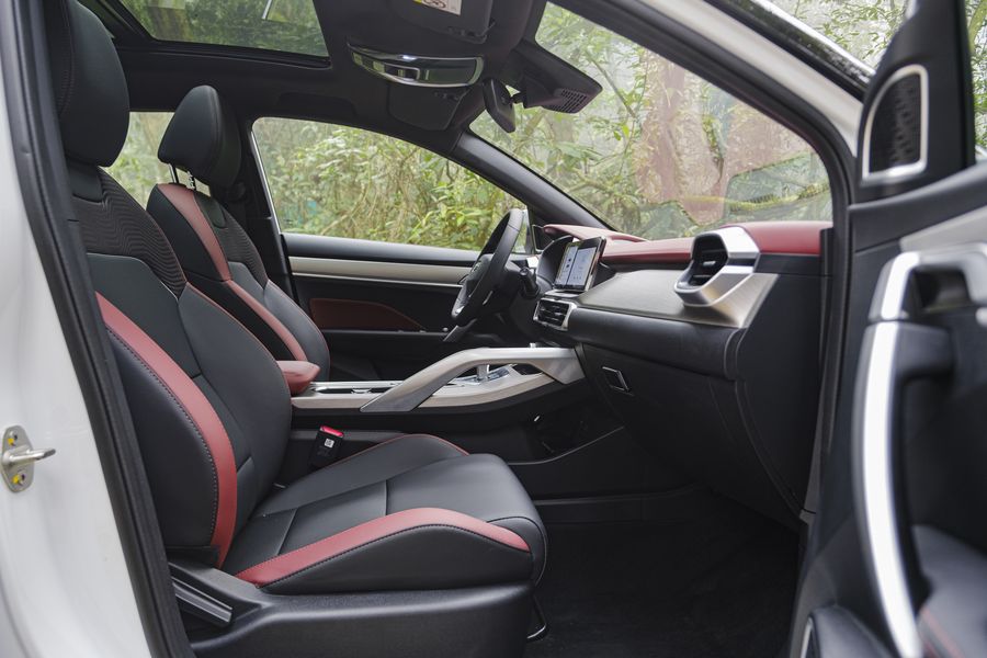 Cung đường đèo từ cổng vườn quốc gia Ba Vì lên nhà thờ đổ chính là bài kiểm tra thực tế nhất: liên tiếp những khúc cua gắt, hẹp và hàng loạt đoạn dốc tức. Tôi chuyển sang chế độ lái Sport và ngay tức thì cảm thấy vô-lăng phản hồi rắn chắc hơn. Xe vào và ra khỏi những khúc cua gắt ở tốc độ 50-60 km/h mà không bị văng đuôi, bám đường tốt. Với mô-men xoắn 255 Nm, xe leo dốc một cách nhẹ nhàng, không phải gồng máy. Chế độ Hill Start Assist giúp xe không bị trôi khi dừng giữa con dốc cao hơn 15 độ ngay trước nhà thờ đổ. Khi xuống dốc, hệ thống phanh tự động khẩn cấp (AEB) giúp kiểm soát tốc độ tốt.