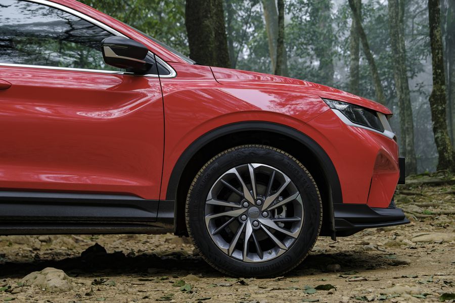 Bản cao cấp sẽ có ngoại hình thể thao, hiện đại với cánh gió lớn, bộ mâm phay hai tông màu 18 inch. Trong khi đó, Geely Coolray bản tiêu chuẩn sẽ có cánh gió nhỏ hơn, đi cùng bộ mâm 17 inch đơn sắc. Cả hai phiên bản này đều có hệ thống ống xả kép hầm hố, giúp xe trông khỏe khoắn hơn.