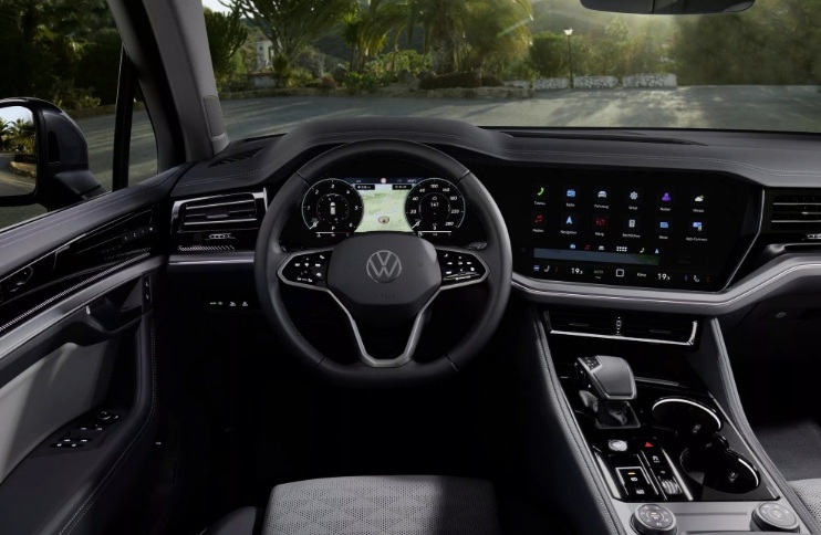 Không gian nội thất của Touareg 2025 có thể không thay đổi quá nhiều về bố cục, nhưng được tinh chỉnh về vật liệu và độ hoàn thiện. Xe vẫn duy trì thiết kế đặc trưng với màn hình sau vô-lăng 12 inch và màn hình trung tâm 15 inch. Các nút bấm vật lý quen thuộc tiếp tục được giữ lại, giúp người dùng dễ thao tác.