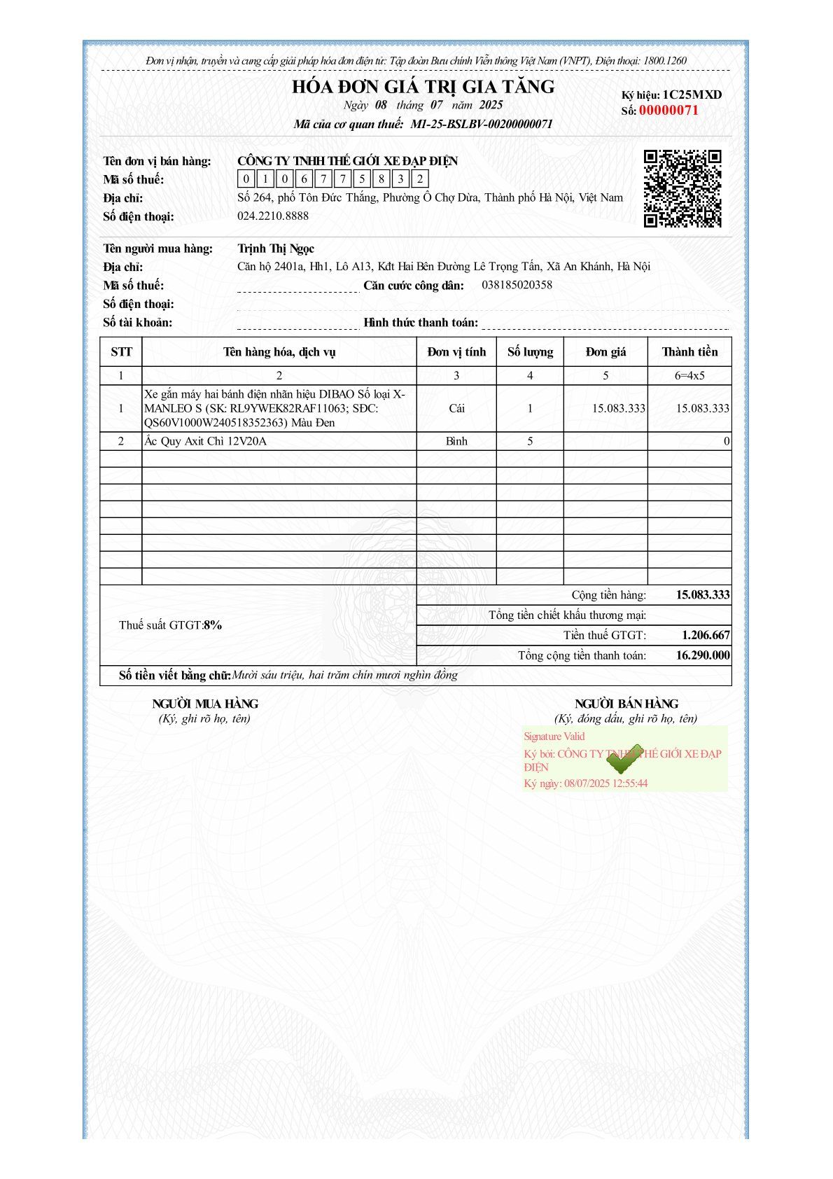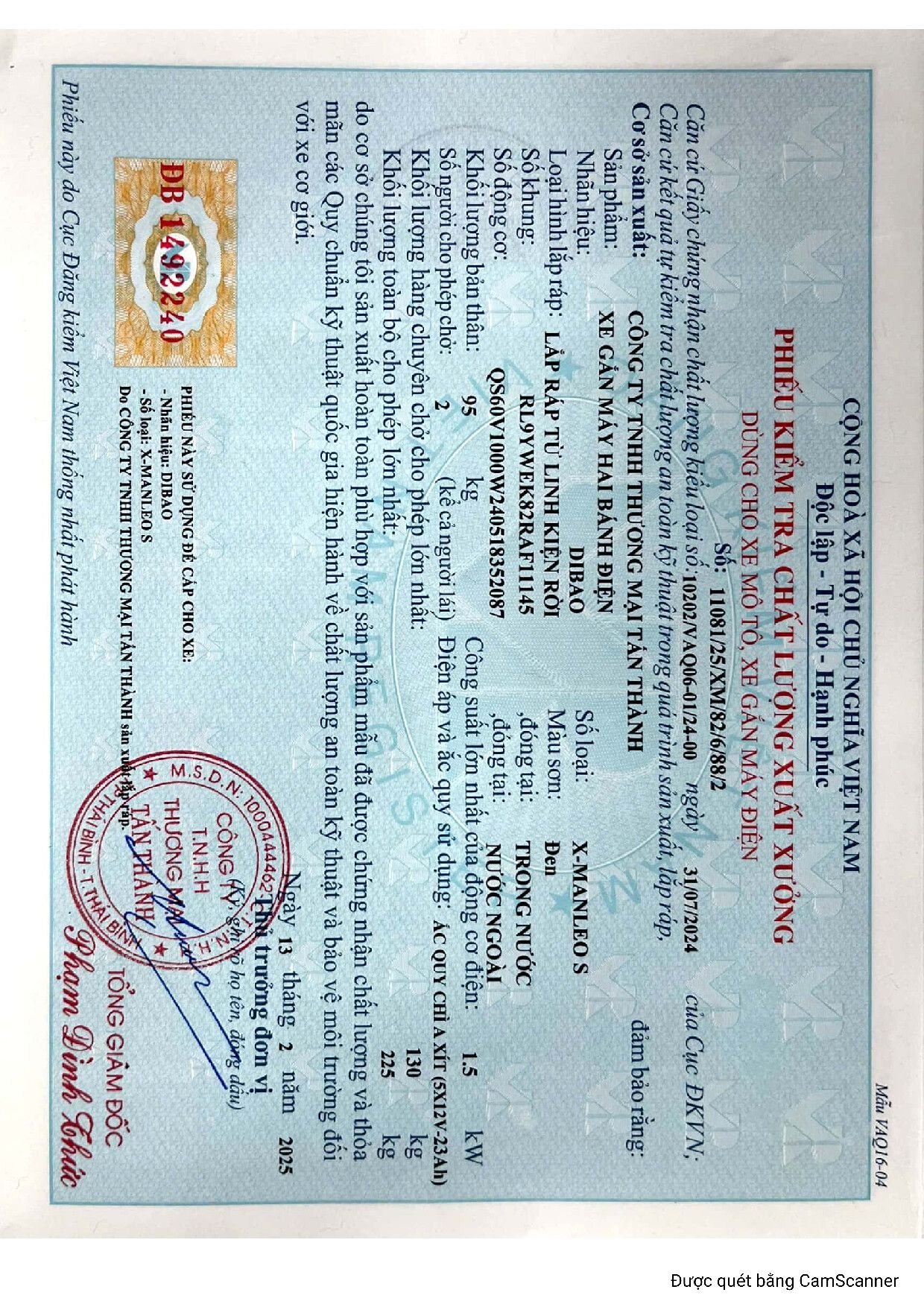 Xe máy điện Dibao Xman Neo có đầy đủ giấy tờ đăng kiểm và hoá đơn
