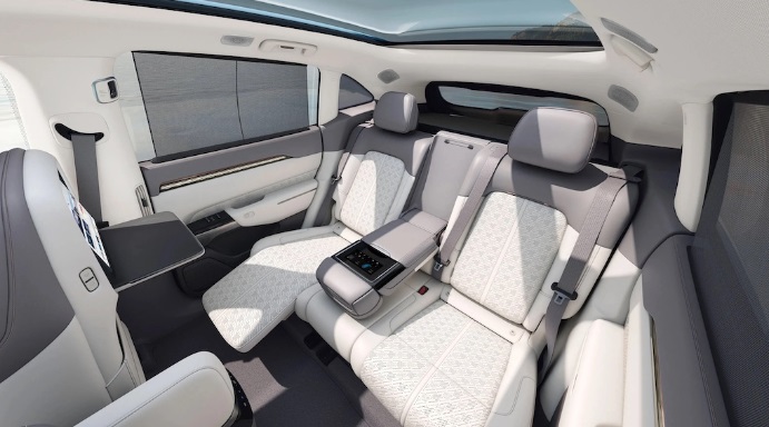 Ở hàng ghế phía sau, khách hàng mua Zeekr 7X sẽ được trải nghiệm không gian cực kỳ sang trọng với ghế chỉnh điện có chỗ để chân có thể mở rộng, rèm che nắng chỉnh điện, cửa sổ trời toàn cảnh.