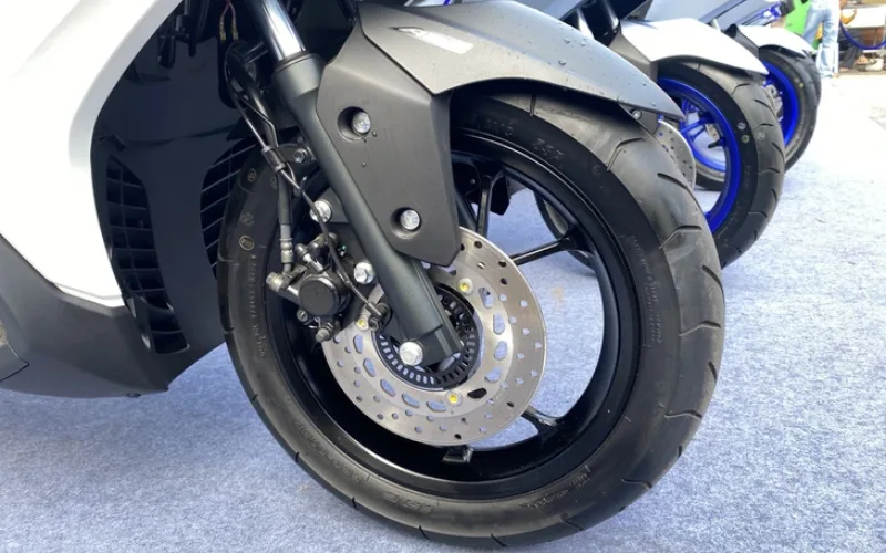 Về an toàn và ổn định vận hành, NVX 2025 được trang bị đầy đủ các tính năng hiện đại. Xe có hệ thống kiểm soát lực kéo (TCS), phanh ABS cho bánh trước, phuộc trước đường kính lớn 30mm và lốp không săm bản rộng (trước 110mm, sau 140mm). Những nâng cấp này không chỉ cải thiện khả năng bám đường, giảm hiện tượng trượt bánh mà còn tăng cường độ ổn định khi phanh gấp hoặc ôm cua ở tốc độ cao.